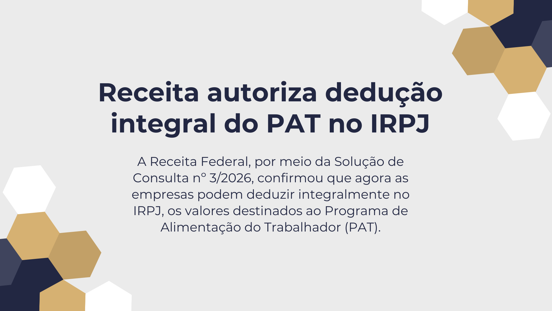 Receita autoriza dedução integral do PAT no IRPJA Receita Federal, por meio da Solução de Consulta nº 3/2026, confirmou que agora as empresas podem deduzir integralmente no IRPJ, os valores desti...